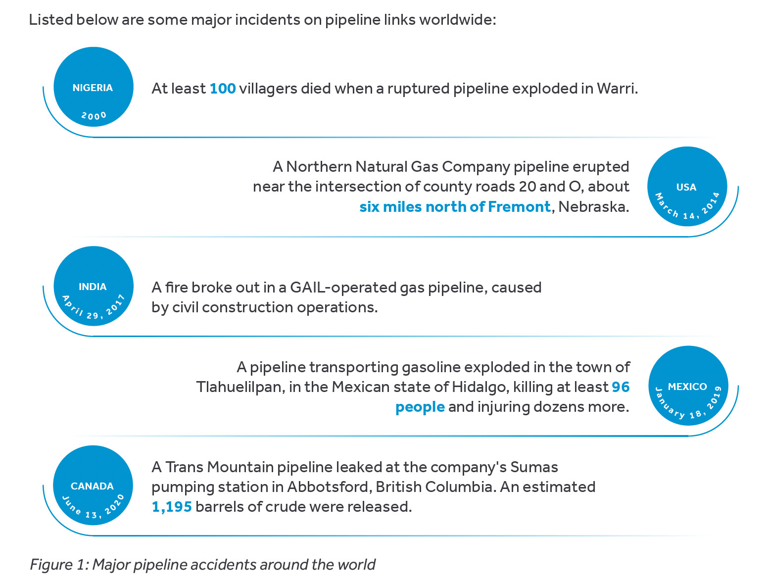 Oil and gas transmission via pipelines is a tightly regulated and closely monitored global operation. Due to the extensive geographical coverage, significant risks are involved.